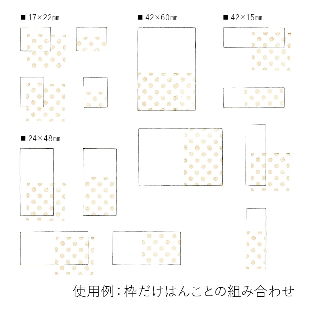 The simple shape of square can also be used in a variety of ways, such as creating a border to separate titles, headings, and corners, or pressing it many times to create a pattern. Furthermore, if you use stamp pads of various colors, you can add color to the paper and make the stamping process even more fun.