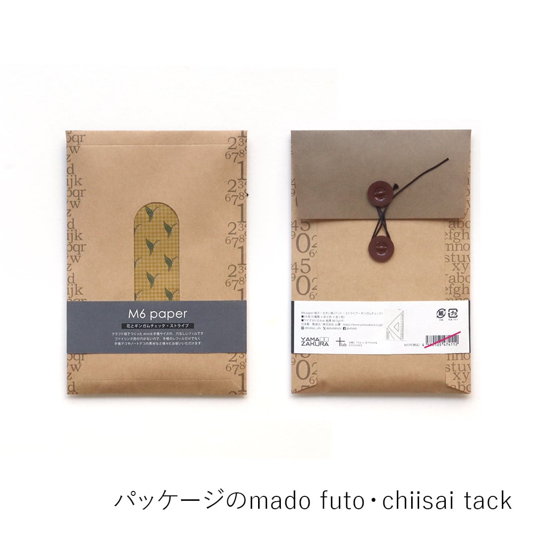 「M6 paper 花とギンガムチェック・ストライプ」は、「バインダーM6サイズ」と一緒に使える穴の開いていないレフィルです(バインダーに挟んで使う場合は、ご自身で穴を開けてお使いください)。