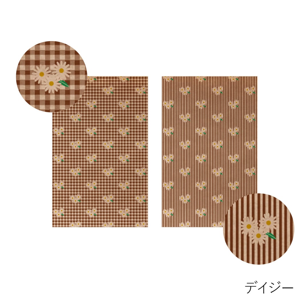 「M6 paper 花とギンガムチェック・ストライプ」は、その名前の通り花とギンガムチェック・ストライプのパターンがクラフト紙にデザインされた紙です。
