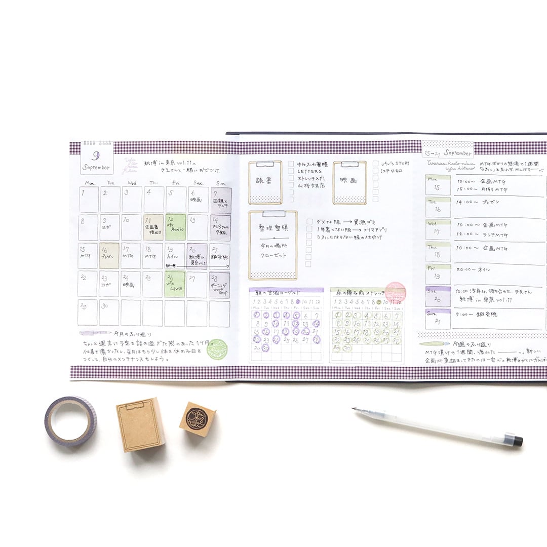 手帳やノートデコ、コラージュの素材に使ったり、お手紙の封緘の印に使ったり、また、日記など文章だけで残す記録の片隅に押しても誌面をキュッと引き締めてくれます。さらに、色々な色のスタンプ台で色を変えて使うと、使うシーンも広がって楽しいハンコです。