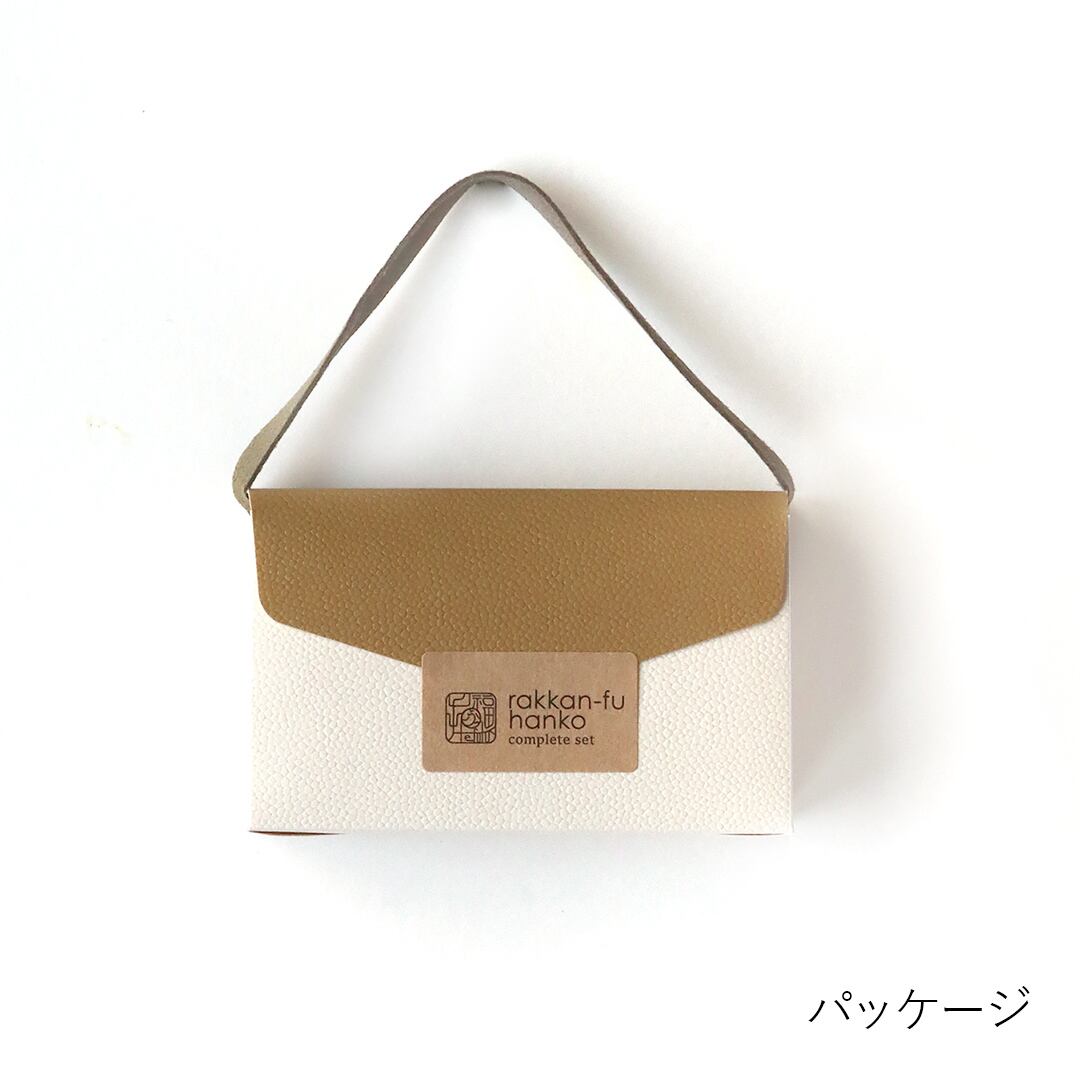 「うふっ」となった時間の記録に押したい、幸せな言葉がデザインされた落款風のハンコのコンプリートセットは、名刺サイズのメモが付いたmemobag入りです。