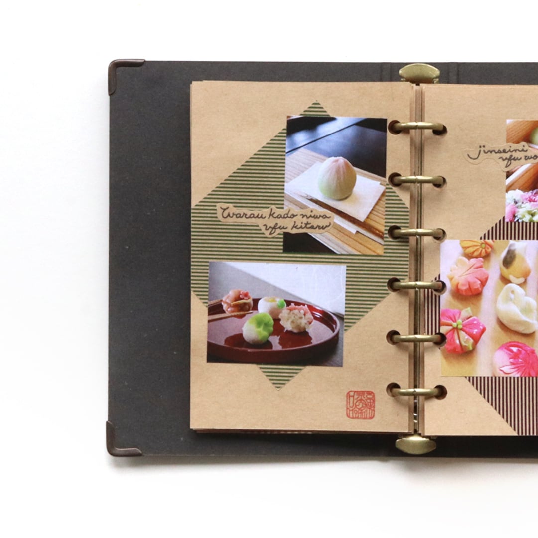 手帳やノートデコやコラージュの素材、日記など文章だけで残す記録の片隅に押しても誌面をキュッと引き締めてくれます。