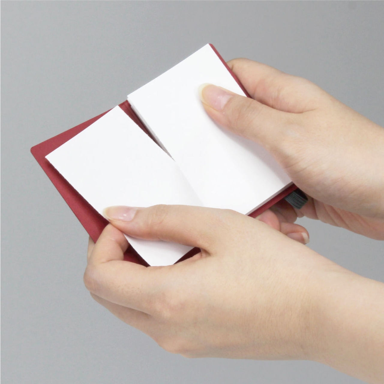 accordion memo は、普段はイベント限定で販売している、表紙に消印風のイラストを箔押ししたデザインのものを選びました。風景印や小型印や記念印のコレクションにぴったりなデザインです。
