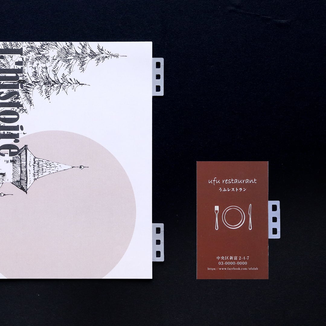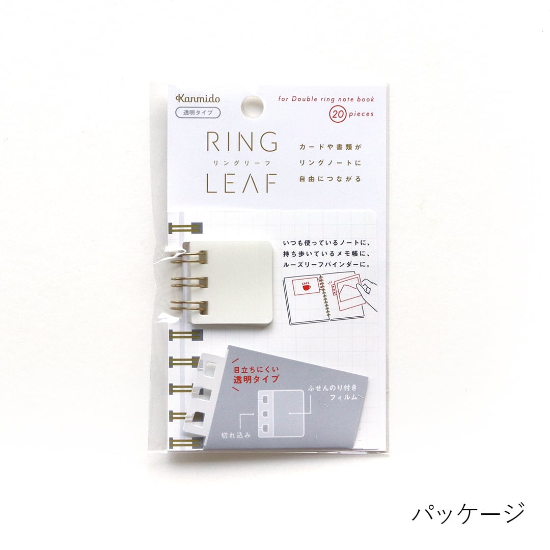 カンミ堂の「リングリーフ」は、いつものリングノートにショップカードやフライヤーやメモなどを “つなげて” まとめる、付箋パーツです。ufu marché ONLINEでは、+lab(プラスラボⓇ)の商品とも相性のいい色「トウメイ」を選んで販売します。