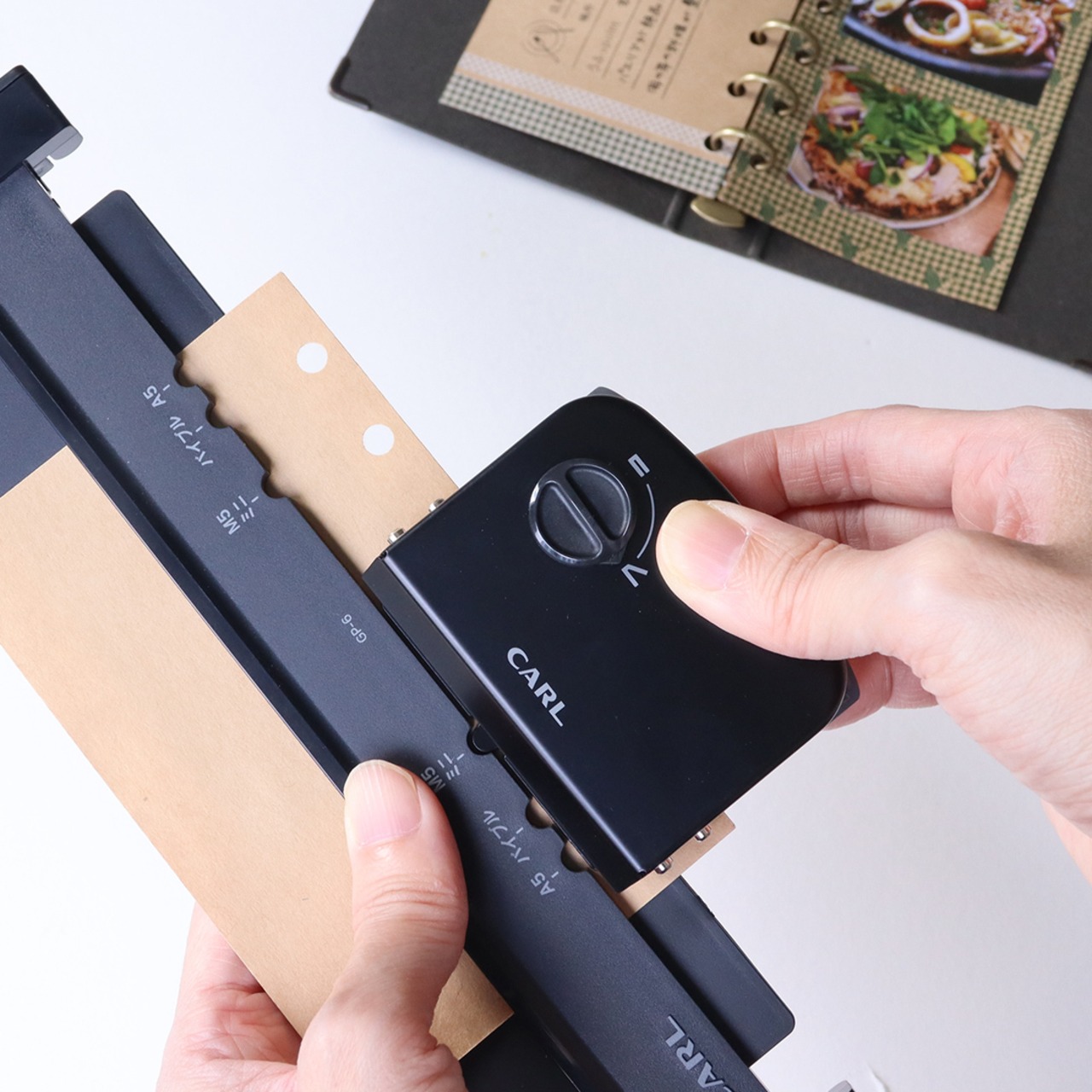 +lab(プラスラボⓇ)の商品「バインダー M6サイズ」に挟むレフィルをつくったり、「M6 paper」の穴あけにもお使いいただけます。ちなみに+labの使い方の例を作る時に、スタッフがいつも使っている道具のひとつでもあります。