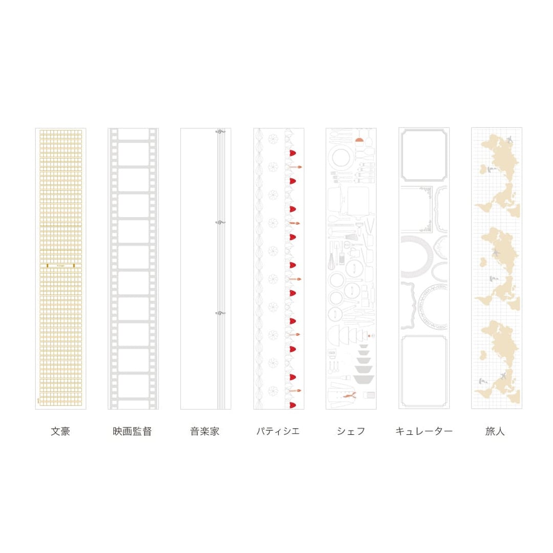ロールタイプのメモです。ロールにはミシン目が入っていないので、必要な長さを必要なだけ切って使うことができます。柄は7種類で、ノートや手帳デコの素材としても便利にお使いいただけます。