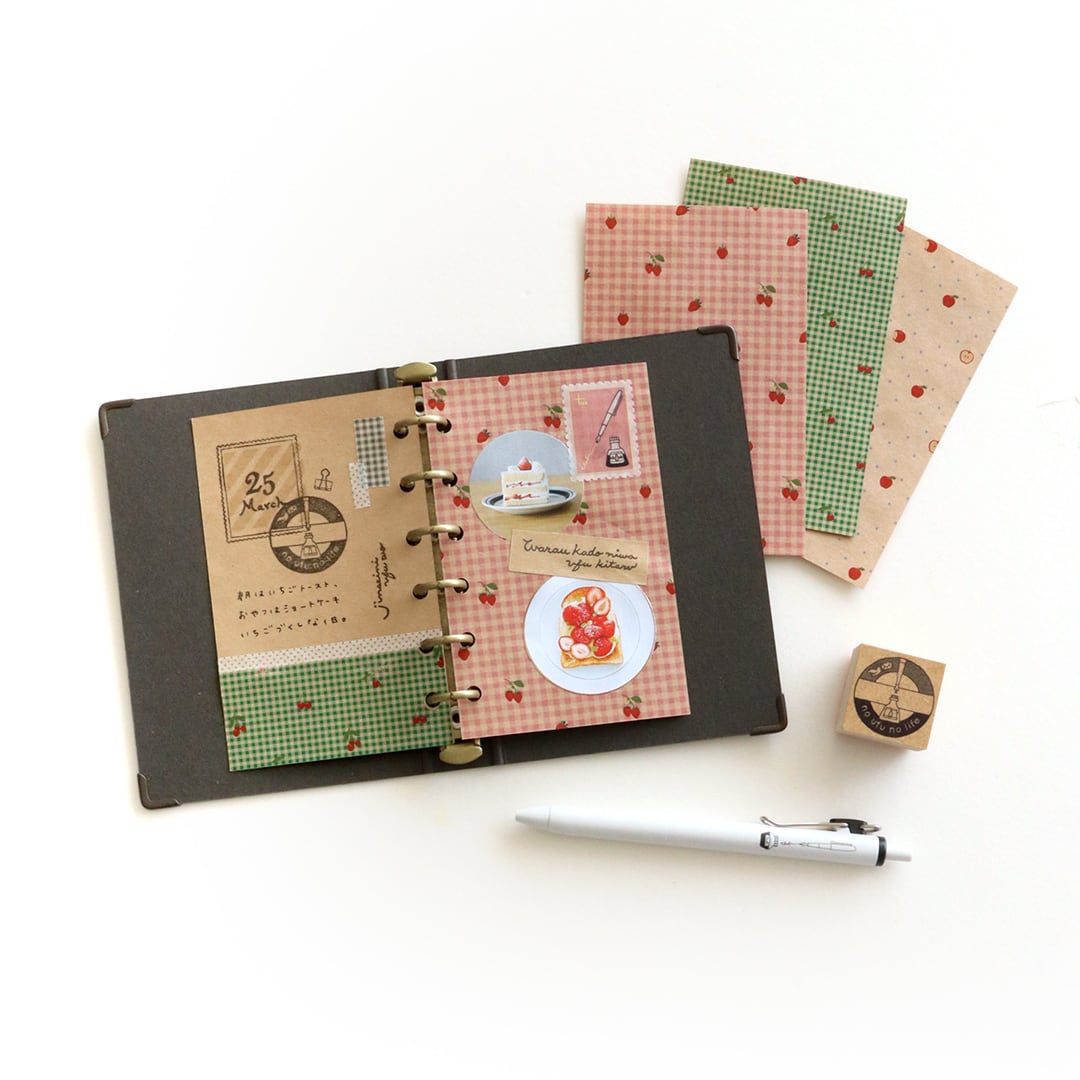 そんな消印風はんこは、手紙を送るときの封筒や葉書に押したり、日々のことやお出かけや旅の思い出など、記録のデコレーションに使うのもおススメです。